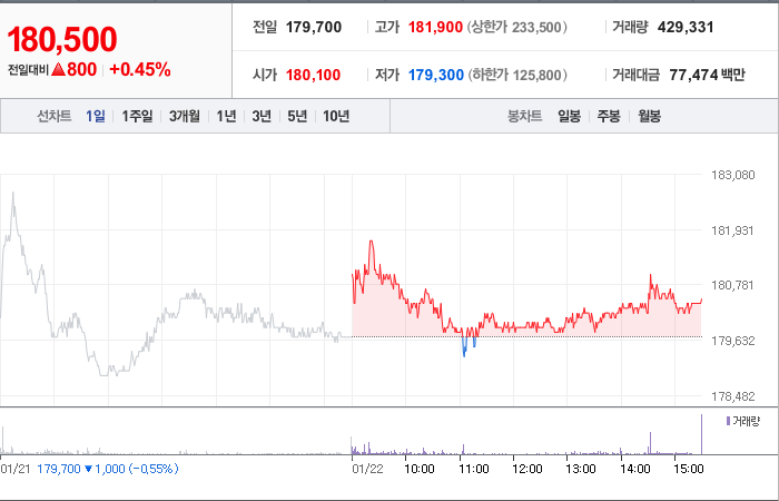 현재 셀트리온의 주가는 179,700원으로, 전일 대비 1,000원이 하락한 상태입니다. 주주 현황을 살펴보면, 셀트리온홀딩스와 기타 87명이 총 28.75%의 지분을 보유하고 있습니다. 셀트리온은 바이오 기업으로, 현재 장중 주가는 179,700원입니다. 이 회사의 시가 총액은 38조 6,390억 원이며, 발행된 주식 수는 214,066,644주입니다. 외국인의 보유 비중은 22.62%에 달하며, 장중 거래량은 389,726주에 이릅니다. 또한, 셀트리온의 매출액은 24,937억 원을 기록했습니다.